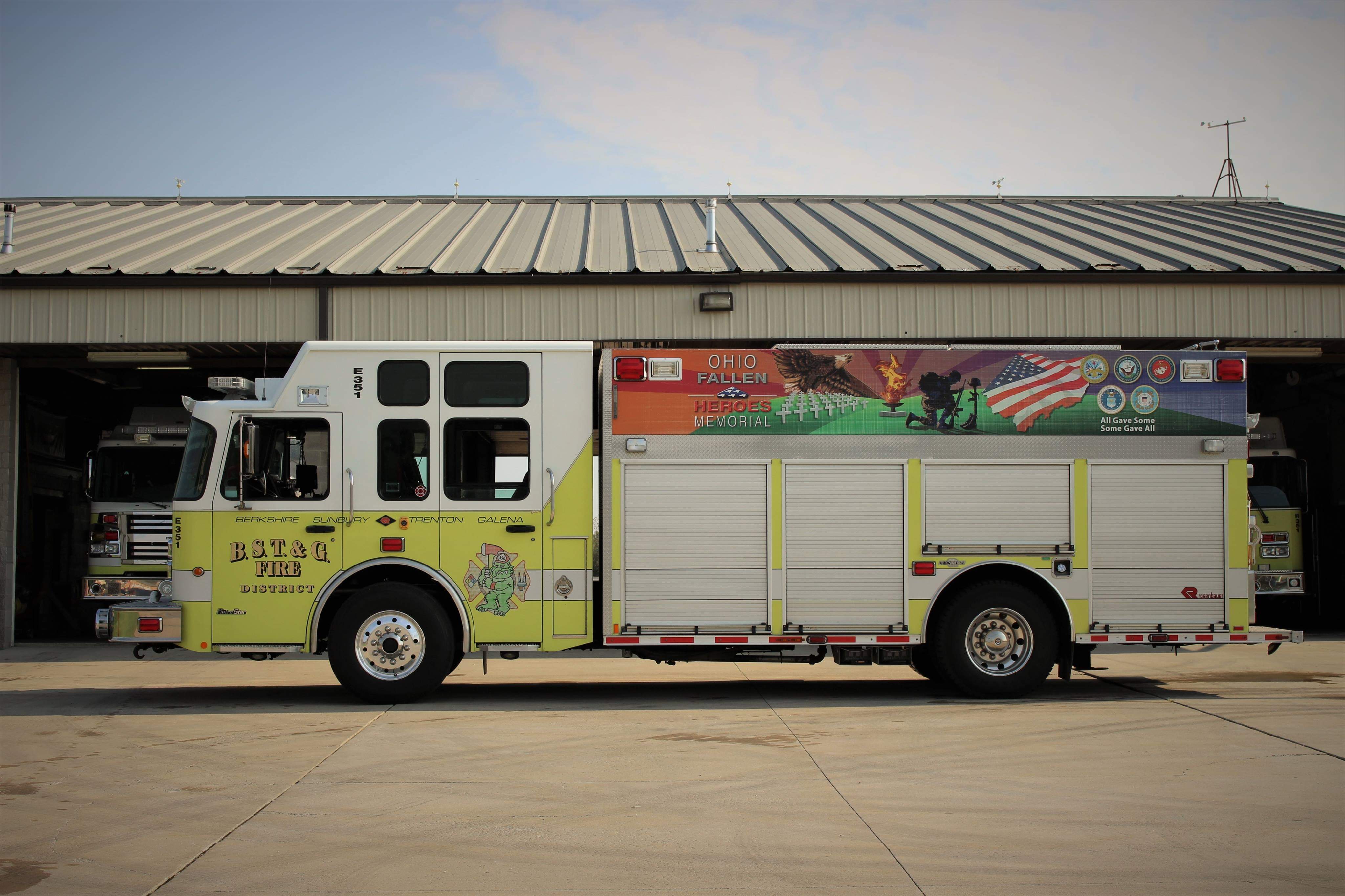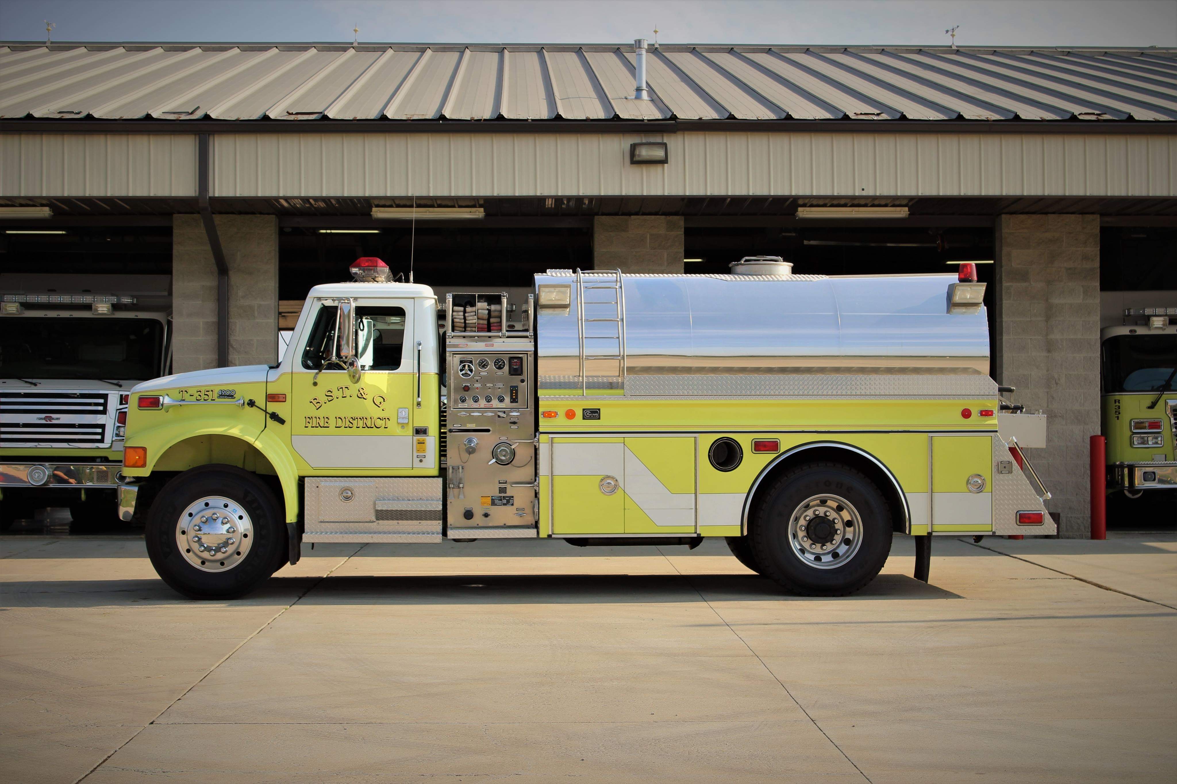 Engine 351 is BST&G’s primary truck for fire calls. The cab can hold up to 6 firefighter but can operate with a minimum of 3, a driver who is responsible for the pump, a Lieutenant who is in charge of the emergency scene, and a firefighter who is the nozzle man. It has several attack hand lines as well as 1,000′ of 5″ supply line. E351 also carries some rescue tools to operate at an auto accident until the heavy rescue arrives. It also carries an array of EMS equipment such as cardiac monitors and oxygen so we can provide emergency medical treatment until a Paramedic unit arrives. It has a Compressed