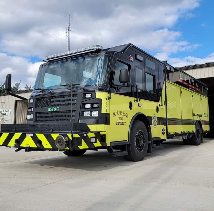 Rescue 351 is a fully custom 2023 Rosenbauer Commander, designed to meet the needs of a rapidly growing community. It has a full complement of state of the art heavy rescue equipment including battery-operated Hurst hydraulic rescue tools, heavy lifting airbags, an assortment of wood cribbing, Paratech stabilization struts and a full assortment of Milwaukee battery-powered hand tools. It also has a small water tank and one attack line for small fires.